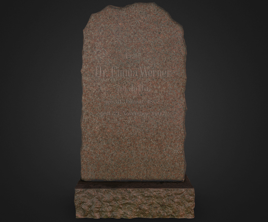 Macewa dr Emmy Werner z domu Jaffa (1828–1907). Czerwony granit. Nowy Cmentarz Żydowski przy ul. Lotniczej we Wrocławiu.