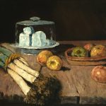 Carl Schuch należy do jednych z najważniejszych malarzy austriackiego realizmu. Na jego oeuvre, czyli dorobek artystyczny, składają się głównie martwe natury i pejzaże. W latach 80-tych XIX wieku mieszkał w Paryżu, a powstałe wówczas dzieła, w tym również należąca do Maxa Silberberga martwa natura, wykazują duży wpływ malarstwa francuskiego. Schuch studiował w tym czasie prace Chardina, Corota oraz Maneta, a jego płótna odwoływały się do ich prac, czego wyrazem jest ograniczony dobór przedmiotów i kontrastowe przedstawienie obiektów na ciemnym tle. Kompozycja “Martwa natura z porami” składa się z niewielu elementów: kilka jabłek, wiązka porów oraz ser pod szklanym przykryciem, znajdujący się na drewnianym stole. Te proste przedmioty namalowane zamaszystymi pociągnięciami pędzla tworzą wyważoną, ale dynamiczna grę światła i cienia.